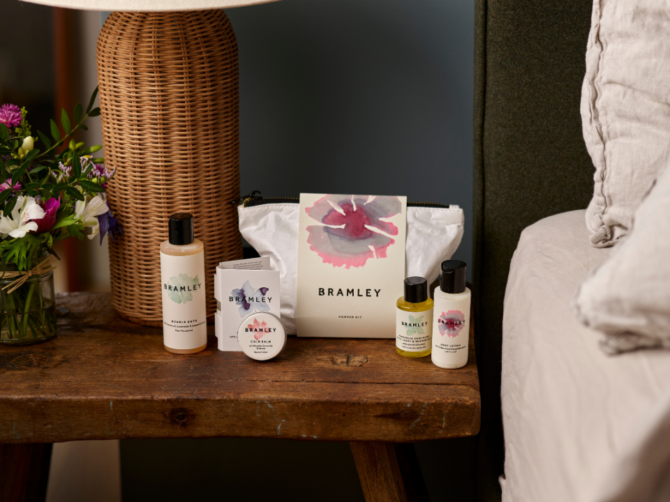 Our much loved collaboration is back. Created exclusively for THE PIG bedrooms, this bespoke Bramley range is a gentle blend of camomile and rosemary. Inspired by THE PIG's Kitchen Gardens and the plants growing just outside the bedroom windows.