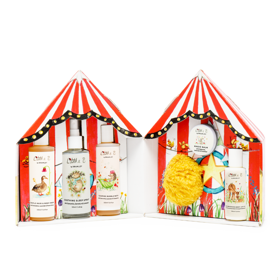 Bring the fun of the circus to your own home with our Little B Circus Tent. Playfully illustrated by journalist Susannah Taylor with magical woodland animals, this Circus Tent opens to reveal a selection of our award-winning Little B products for children. The ultimate present for that special little one in your life, they won't even want to throw away the packaging, Chloë, the founder of Bramley’s daughter, uses her Circus Tent to house her Sylvanian families!